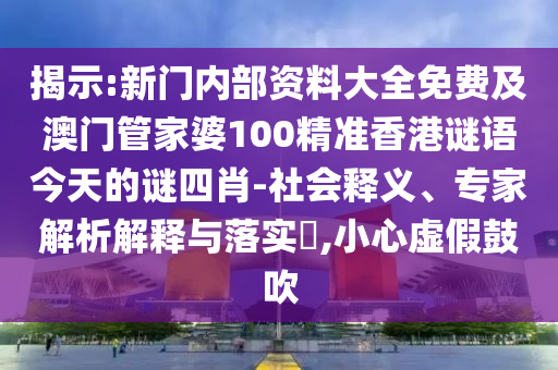 關于揭示“新門內部資料大全免費”、“澳門管家婆100精準香港謎語今天的謎四肖”等關鍵詞的社會釋義、專家解析解釋與落實,以及警惕虛假宣傳的內容