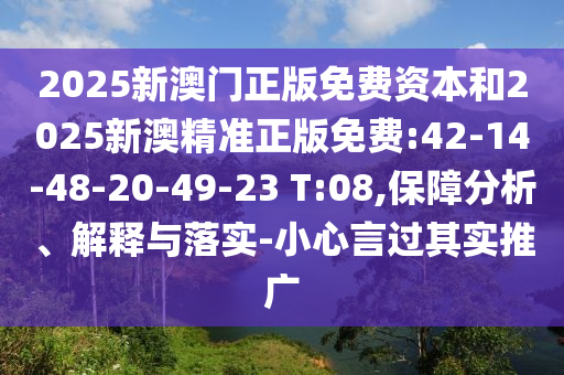 2025新澳門(mén)正版免費(fèi)資本和2025新澳精準(zhǔn)正版免費(fèi):42-14-48-20-49-23 T:08的保障分析、解釋與落實(shí)
