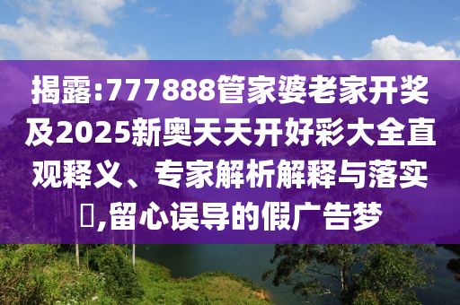 關于揭露“777888管家婆老家開獎”及“2025新奧天天開好彩大全”的直觀釋義、專家解析解釋與落實,以及警惕誤導的假廣告之夢