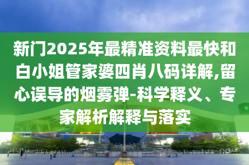 新門2025年最精準資料最快和白小姐管家婆四肖八碼詳解,留心誤導的煙霧彈-科學釋義、專家解析解釋與落實