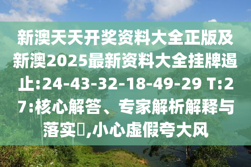新澳天天開獎資料大全正版及新澳2025最新資料大全掛牌遏止:24-43-32-18-49-29 T:27:核心解答、專家解析解釋與落實?,小心虛假夸大風