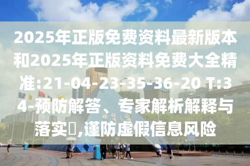 摘要:,,關(guān)于2025年正版資料的最新版本和資料大全,提供精準(zhǔn)信息,包括特定日期如21-04-23的號碼預(yù)測等。同時強(qiáng)調(diào)預(yù)防解答、專家解析解釋與落實的重要性,并提醒公眾謹(jǐn)防虛假信息風(fēng)險。內(nèi)容旨在幫助公眾獲取真實、準(zhǔn)確的資訊,避免受到誤導(dǎo)和損失。