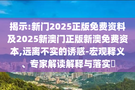 揭示:新門2025正版免費資料及2025新澳門正版新澳免費資本,遠離不實的誘惑-宏觀釋義、專家解讀解釋與落實?